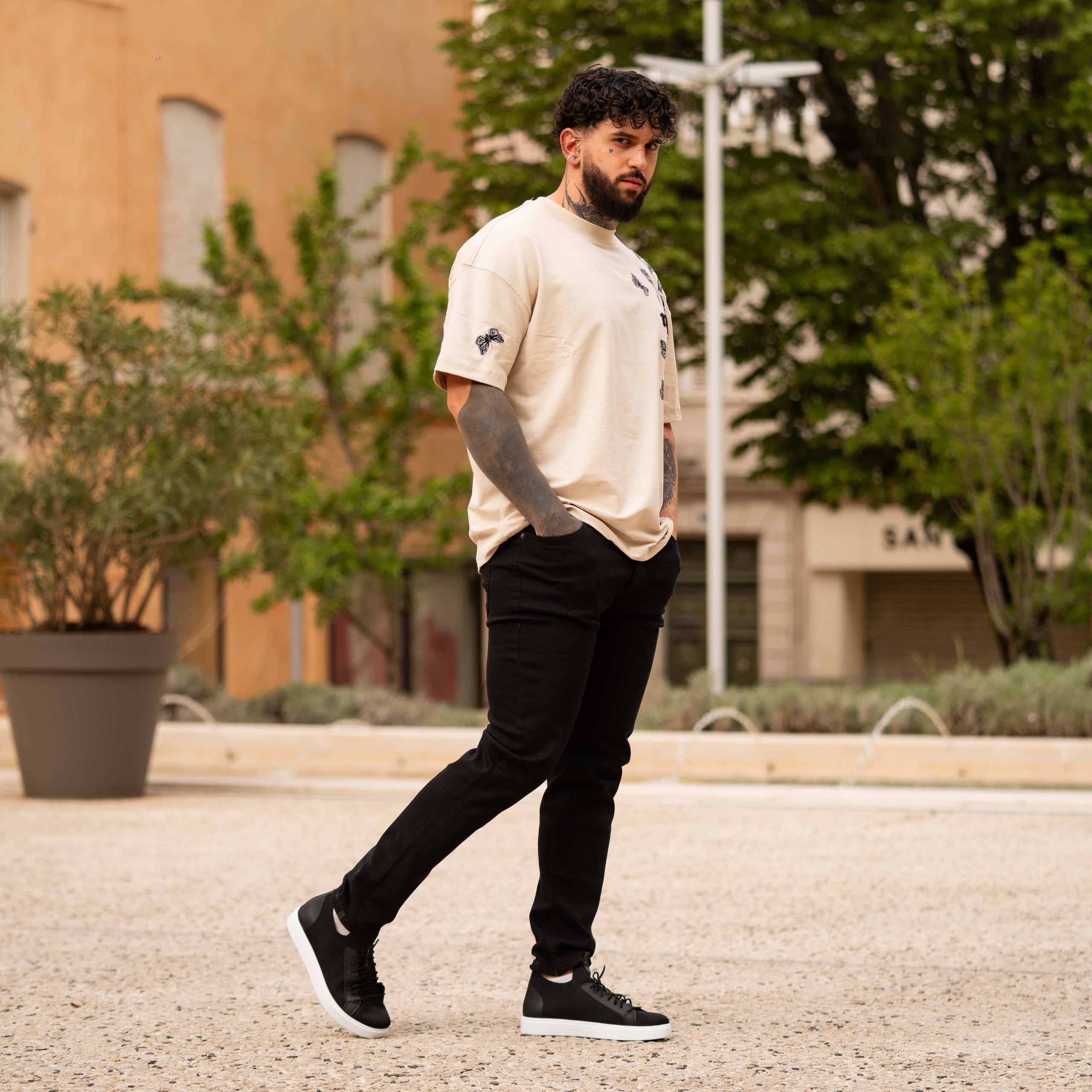 Affirmez votre style avec notre T-shirt Beige "Rise Against Odds", une pièce unique qui allie confort et design original. Idéal pour ceux qui aiment se démarquer avec une touche artistique, ce t-shirt est parfait pour toutes les occasions décontractées.